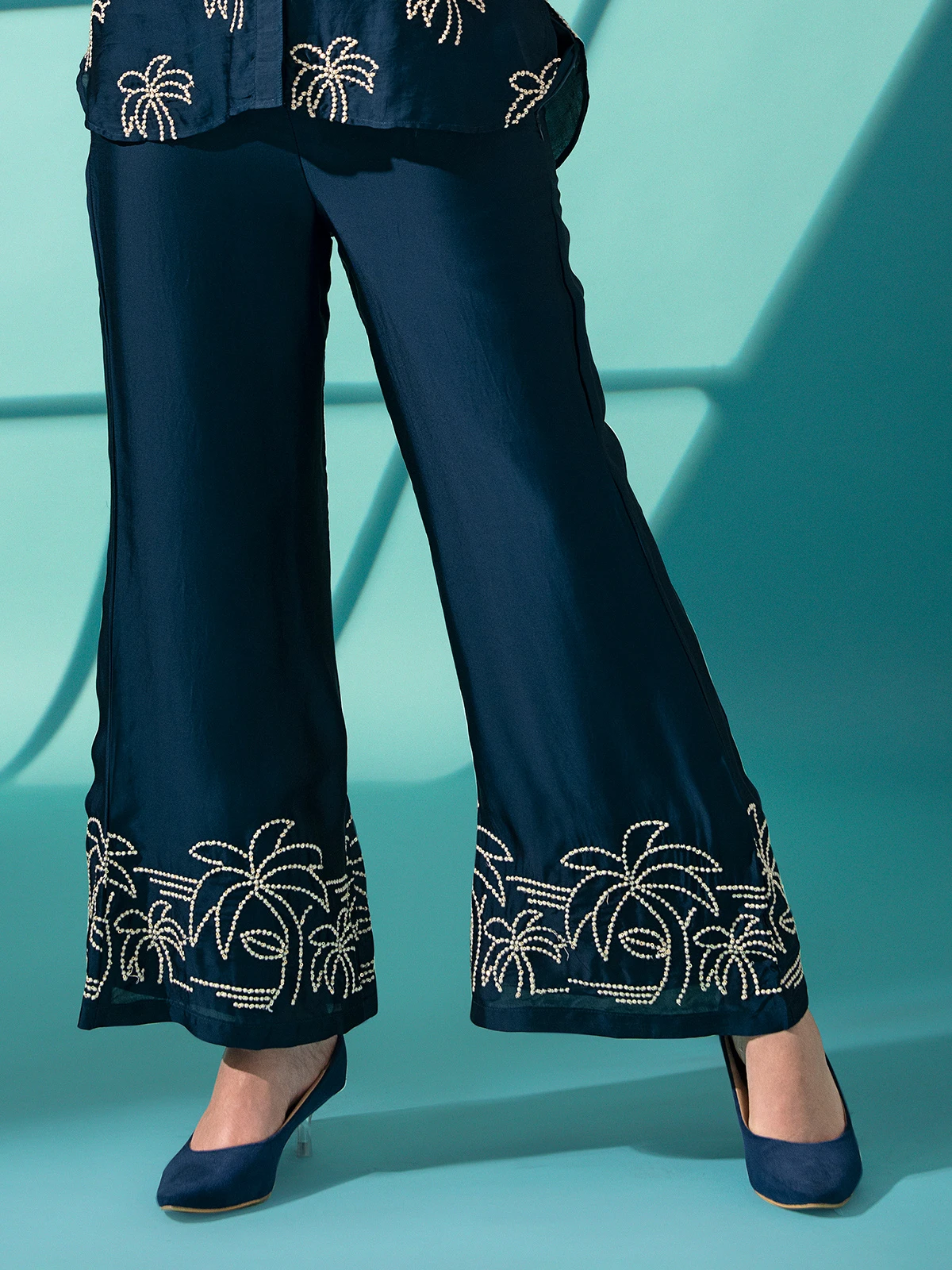 This navy silk co ord set may have embroidery work, enhancing it overall beauty. The full sleeves making it an excellent choice for festive occasion.