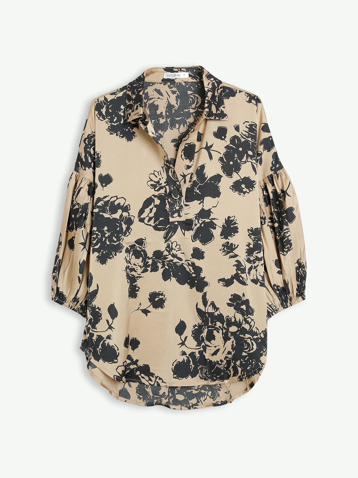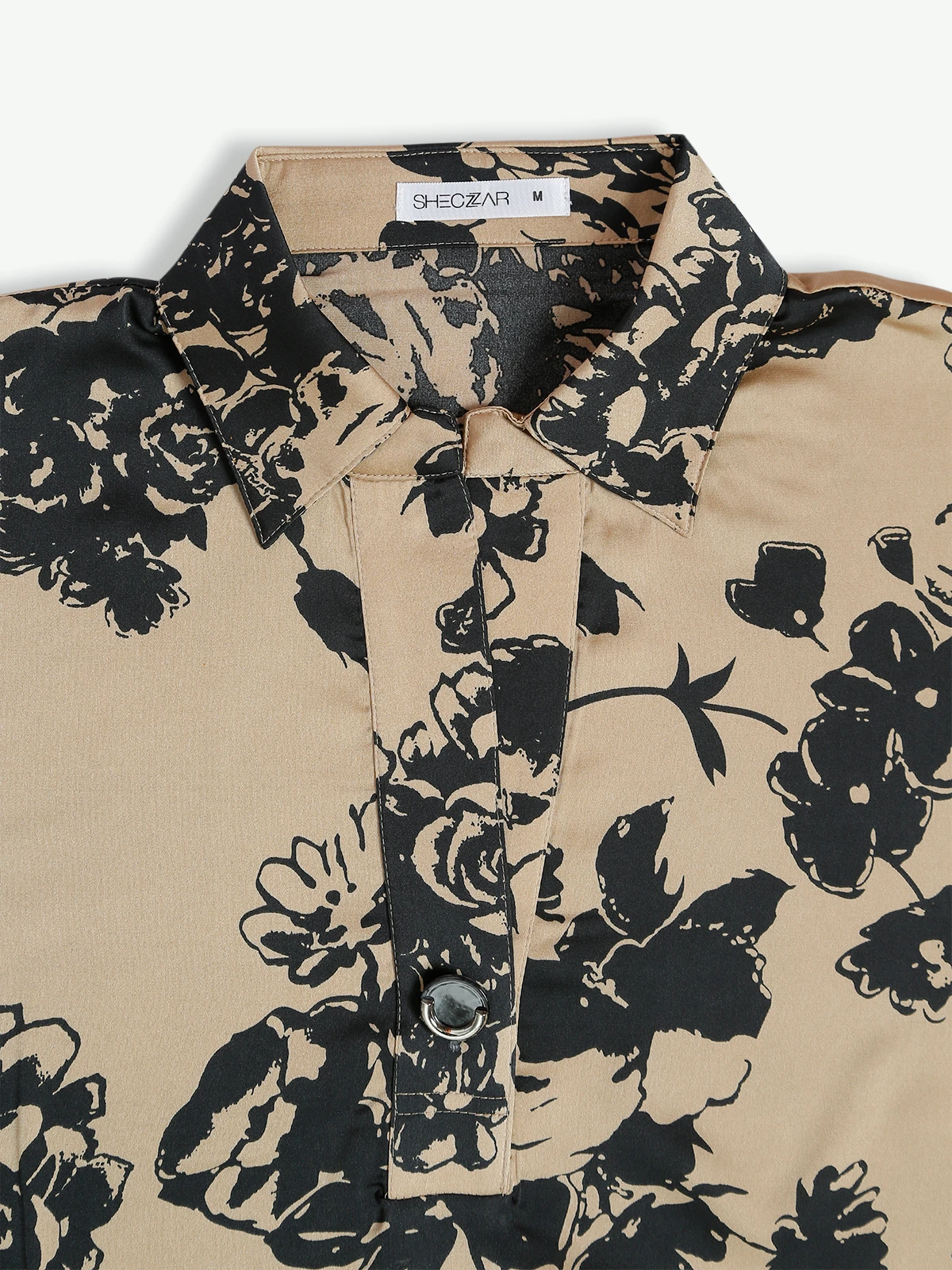 The unique beige polyester printed top only adds vibrancy and warmth to your wardrobe. It has a collar neck and quarter sleeves.