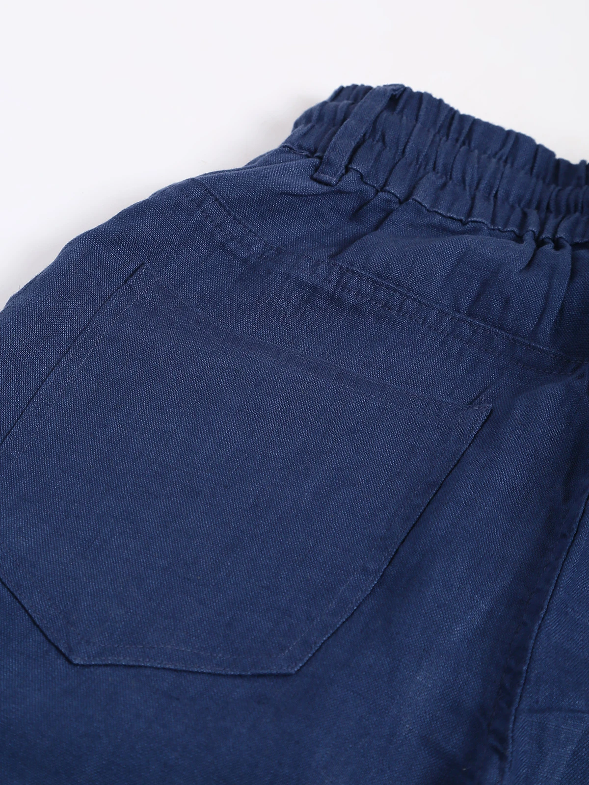 Modern blue plain ankle length pant for casual styling from Boom. Cut to a relaxed fit with an elasticated waistband with drawstring, two scoop pockets on the front, a coin pocket over the right side and two patch pockets on the back.