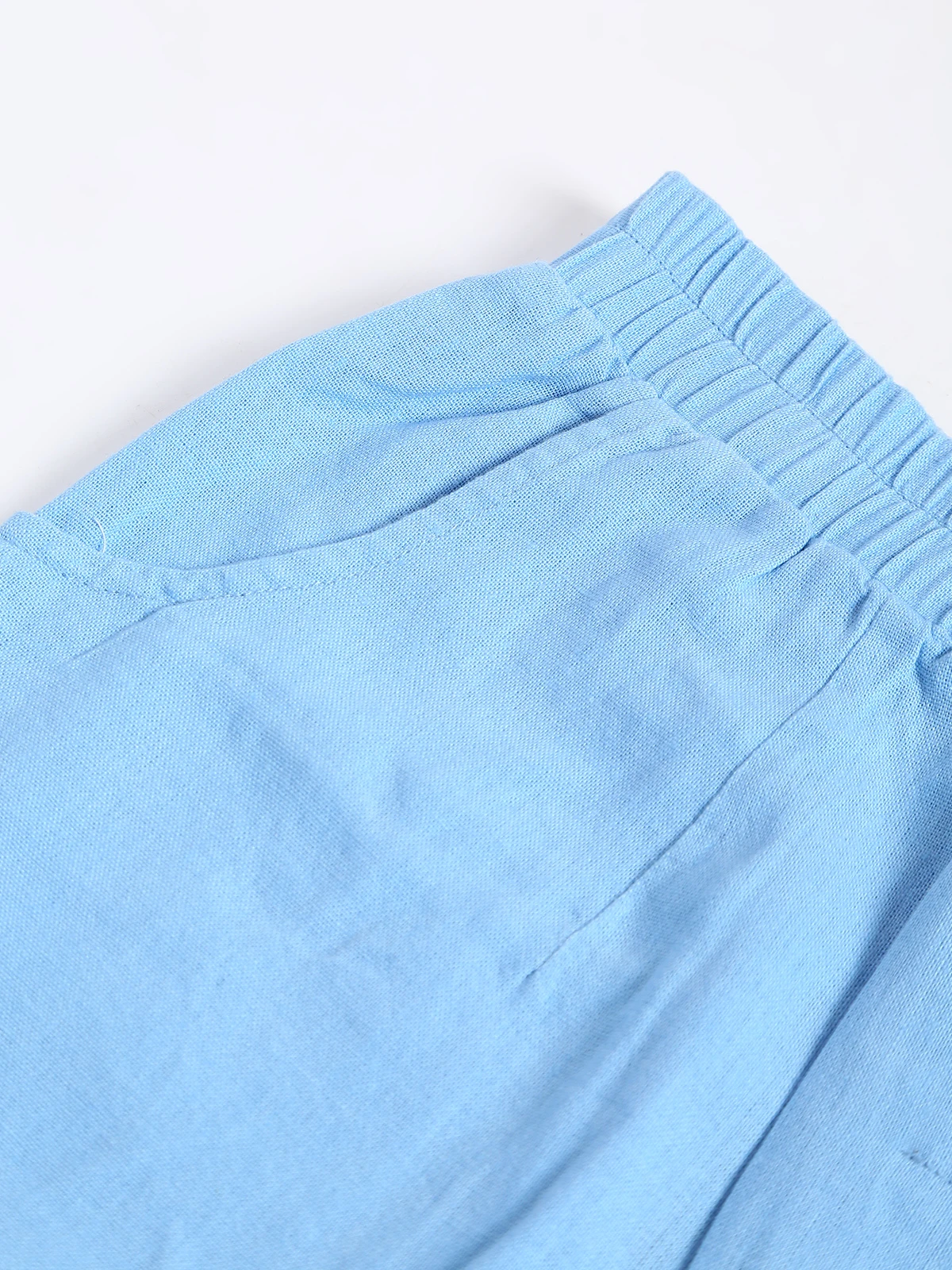 Shop this latest bottom wear collection from Boom, this sky blue cotton ankle length pant. It has an elasticated waistband with drawstring and two slant pockets on the front.
