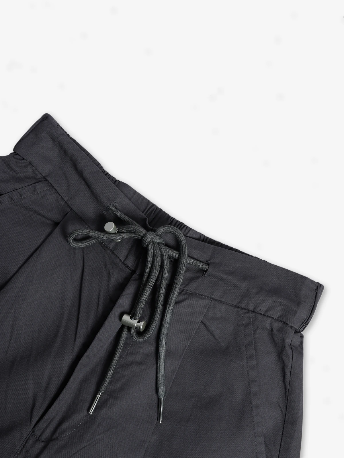 Get a head turning look with this classy grey cotton plain ankle pant from Boom. The half elastic waistband with drawstring, four pockets and a button zipper closure adds a dashing touch.
