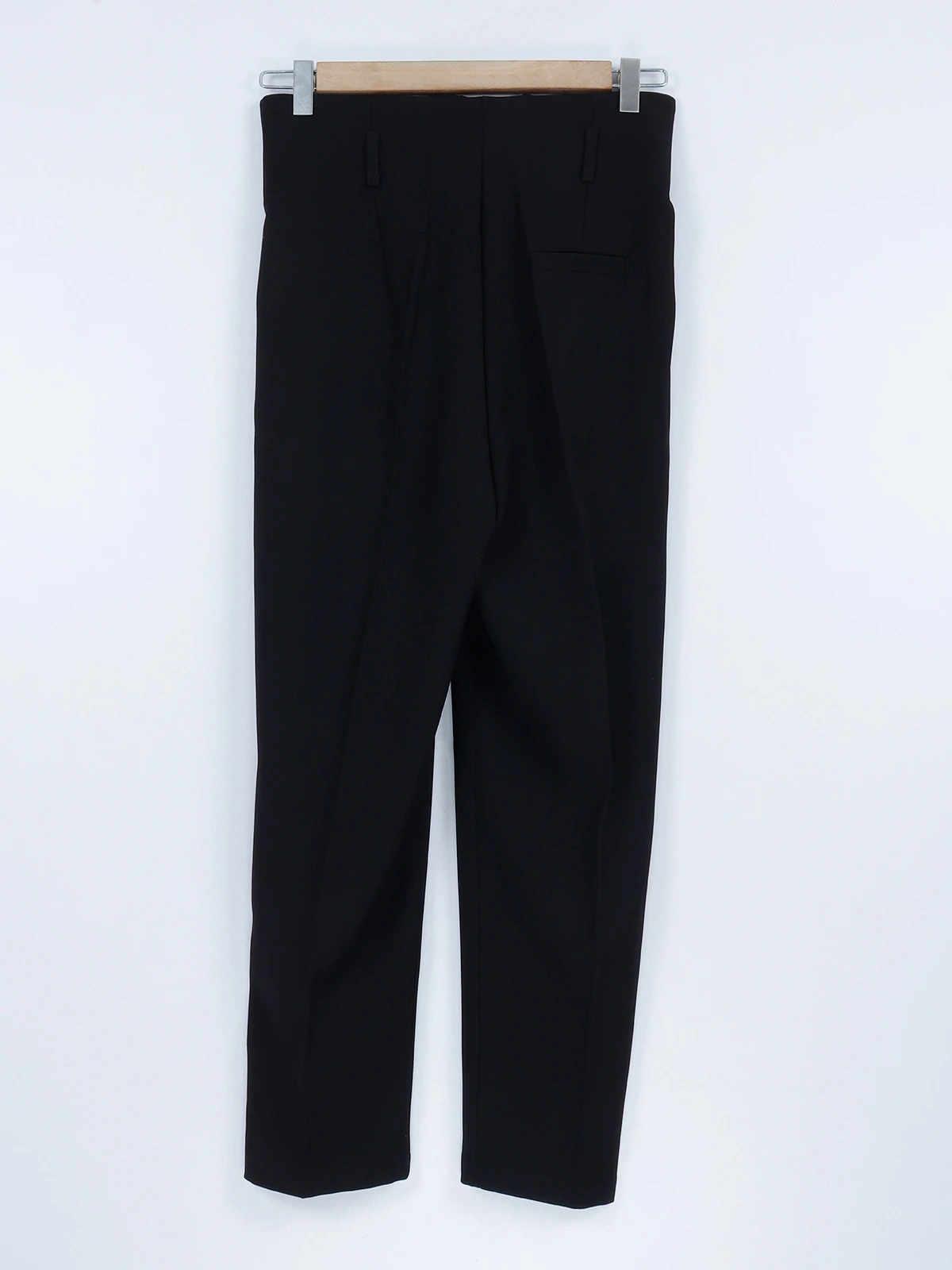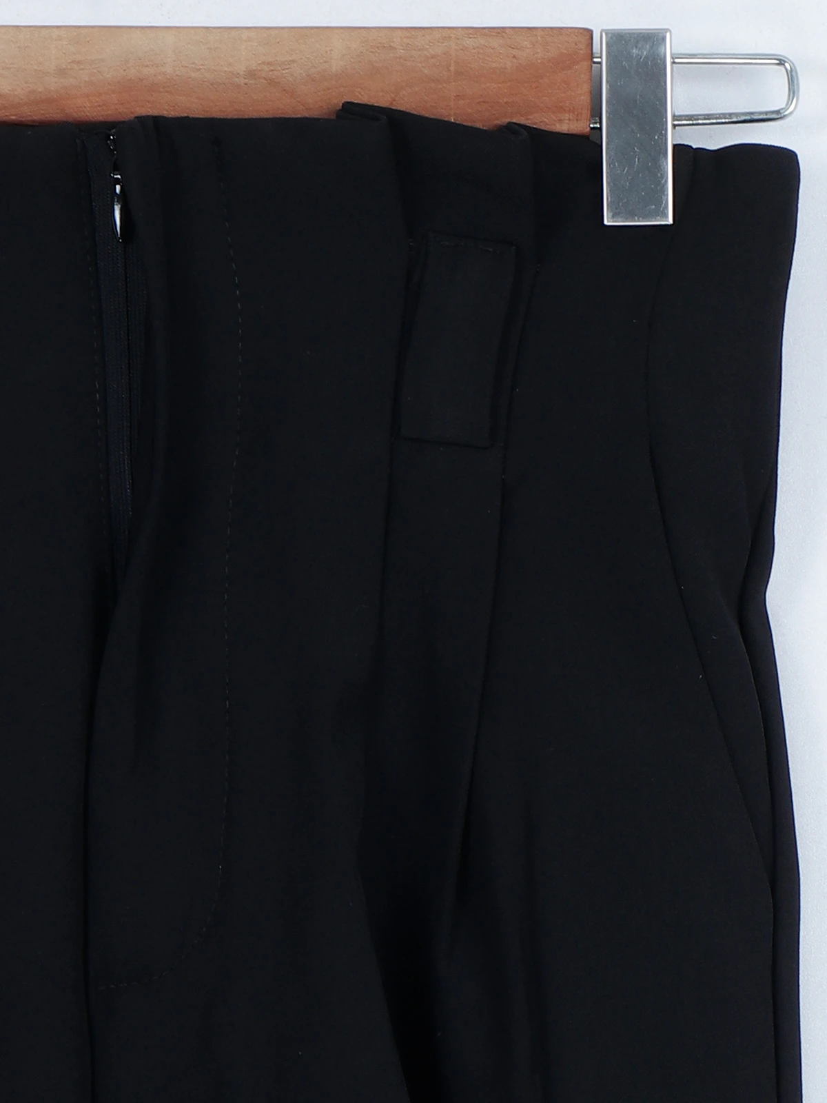 This Boom black plain pant is perfect for formal wear, crafted in lycra fabric with a waistband with belt loops, a welt pocket on the back, and a buttoned zipper closure.