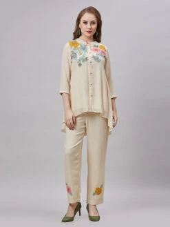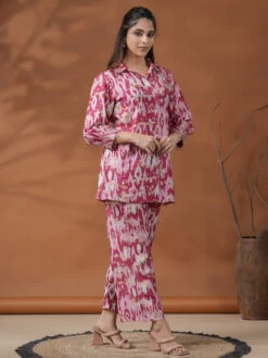 Go for casual outing with this trendy brown co ord set. Designed with the finest cotton, this set has elegant half sleeves and a comfortable round neck. Comes with a bottom.