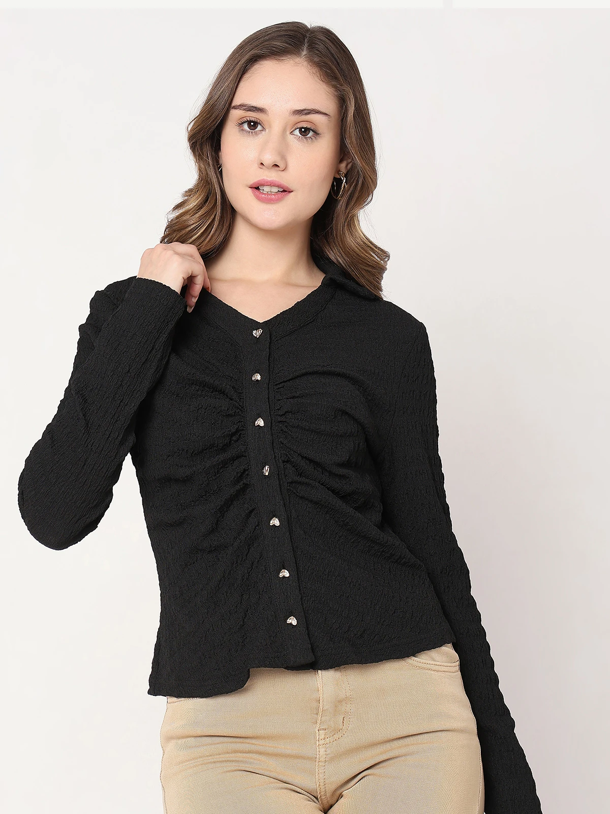 Take your everyday look a notch higher with this black shirt from Deal. Made from lycra, this shirt features a collar neck and full sleeves for a relaxed look.