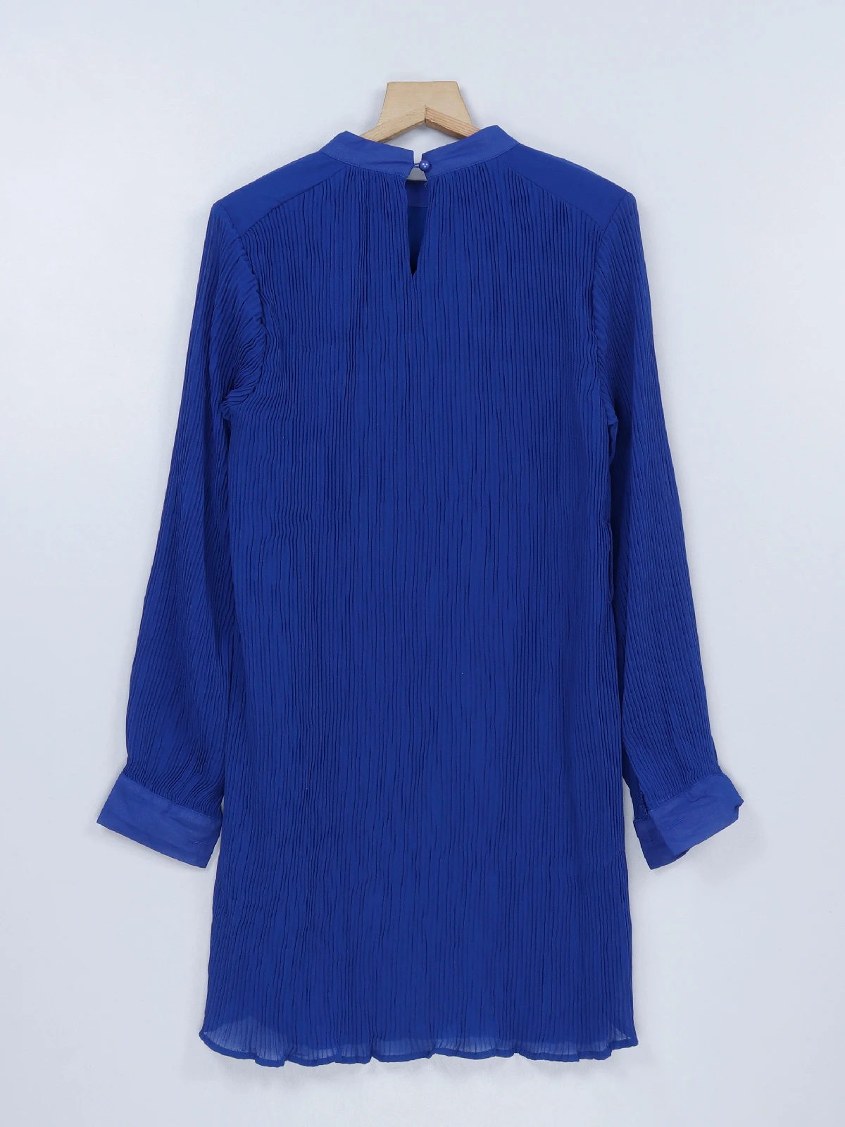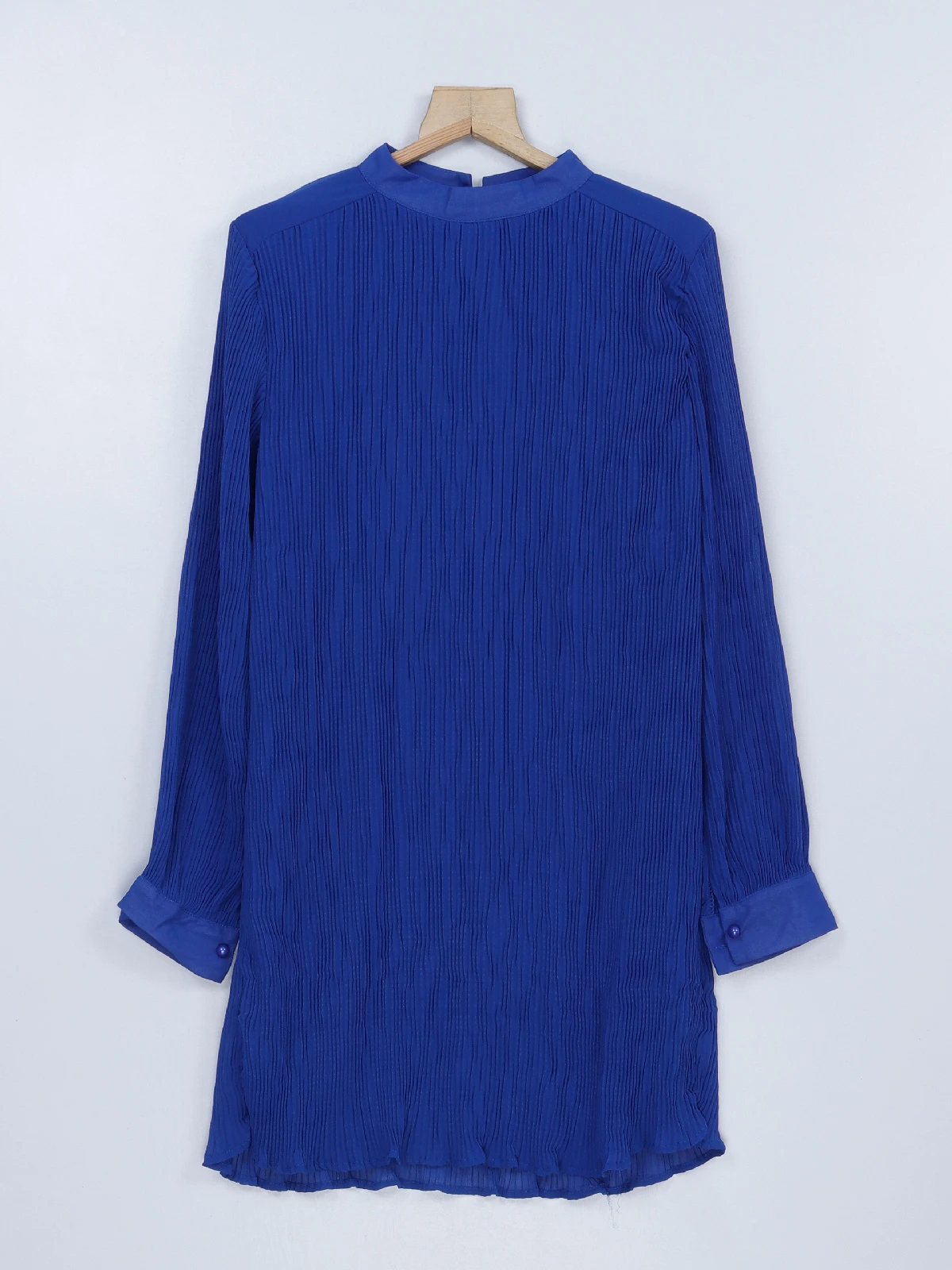 This royal blue plain dress from Deal has been fashioned using georgette for a smooth and soft finish against the skin. This dress has a bandgala neck and full sleeves detailing for a more femme structured look.