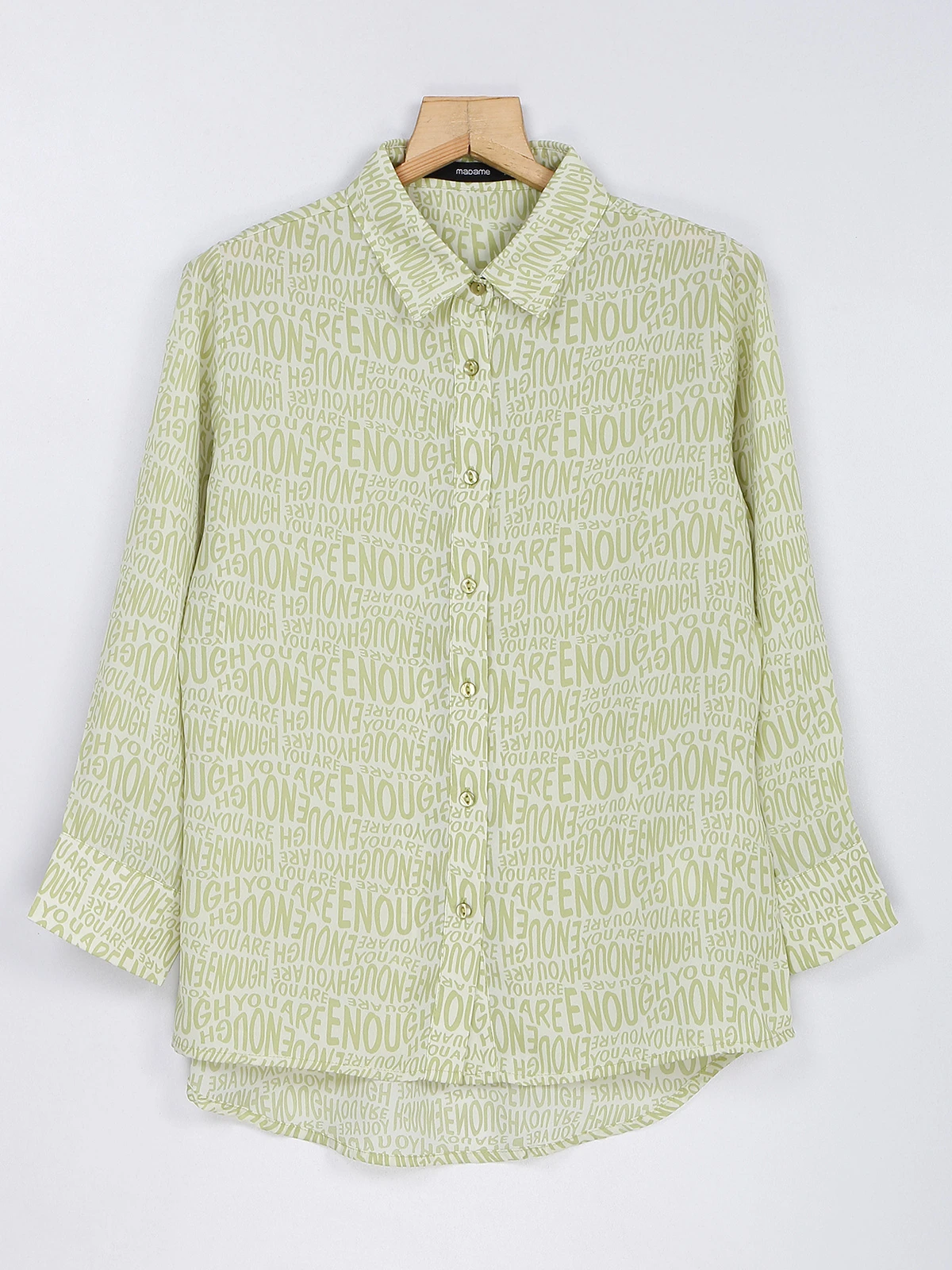 Featuring full sleeves and collar neck, this green shirt with typography print . Made from polyester fabric for ultimate comfort this summer.