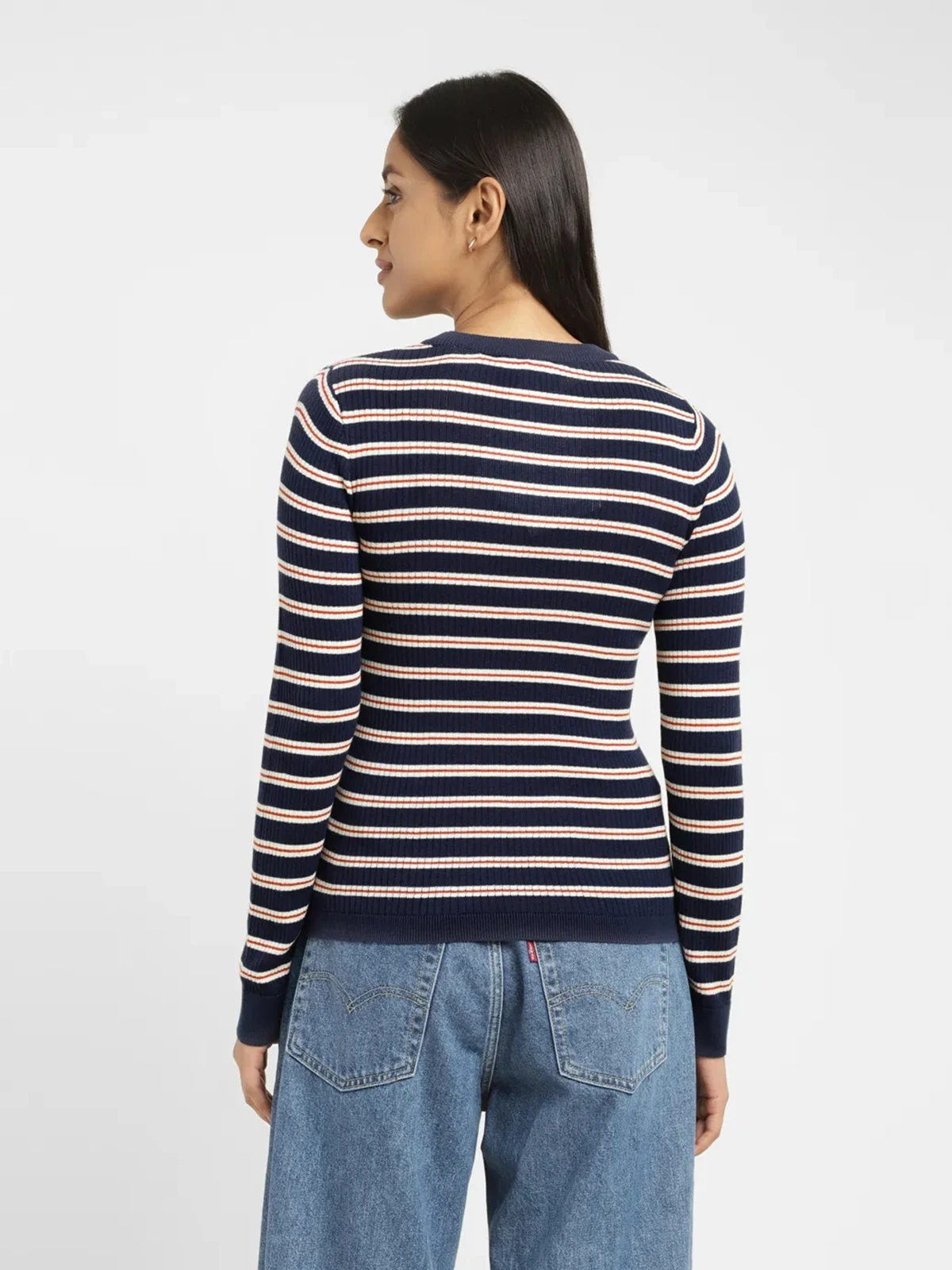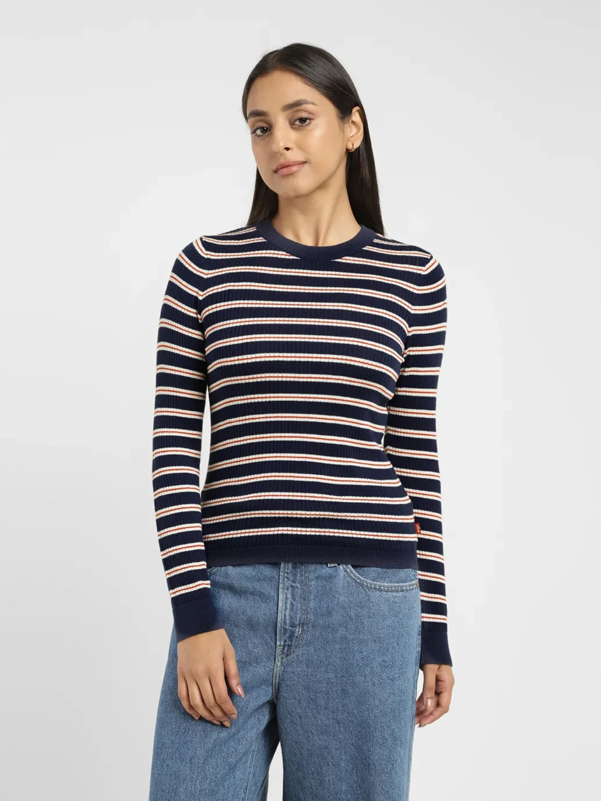 Upgrade your casual wardrobe with this navy stripe t shirt from Levis. Crafted in superb quality knitted, it is well designed with a round neck and quarter sleeves.