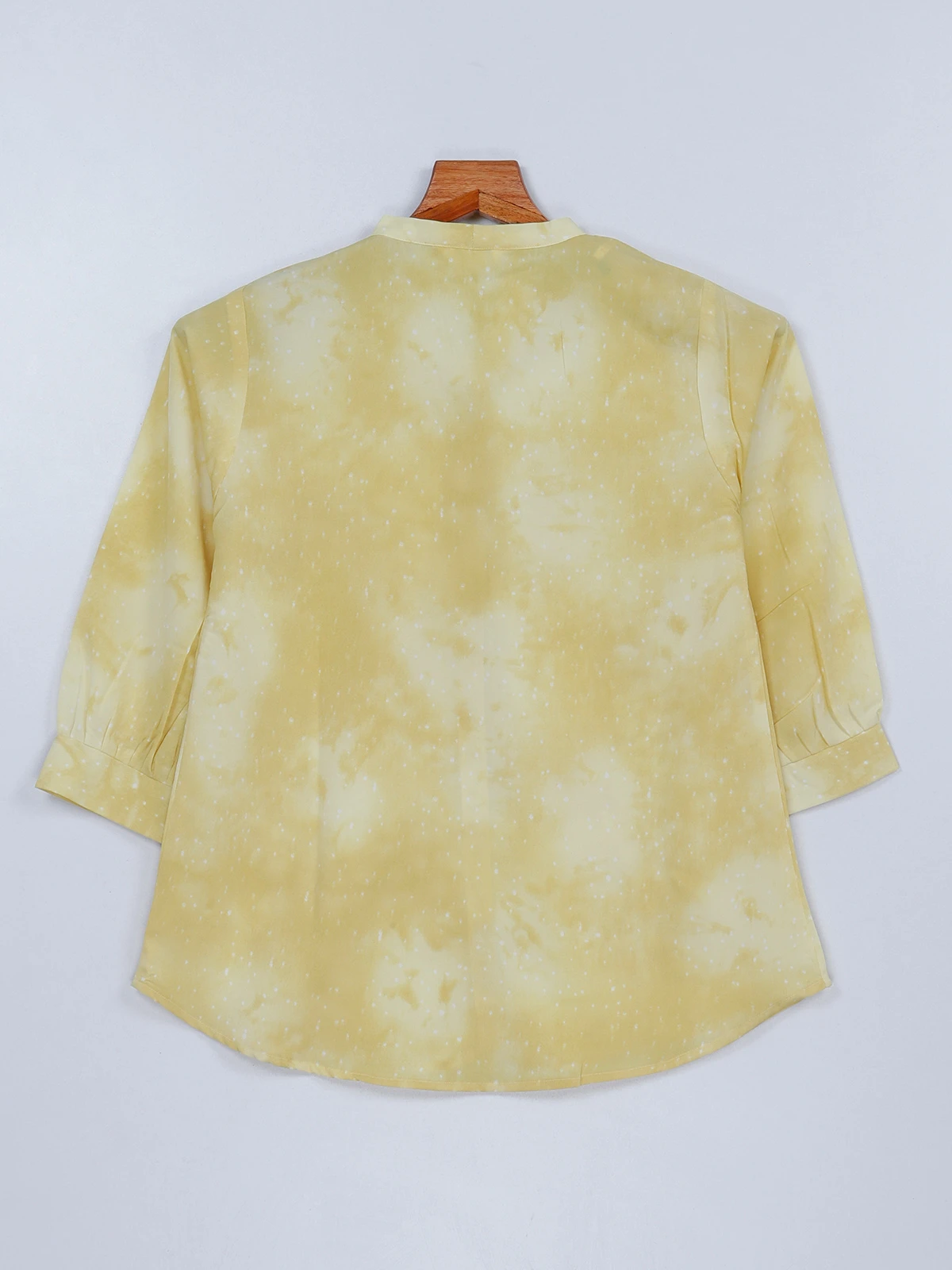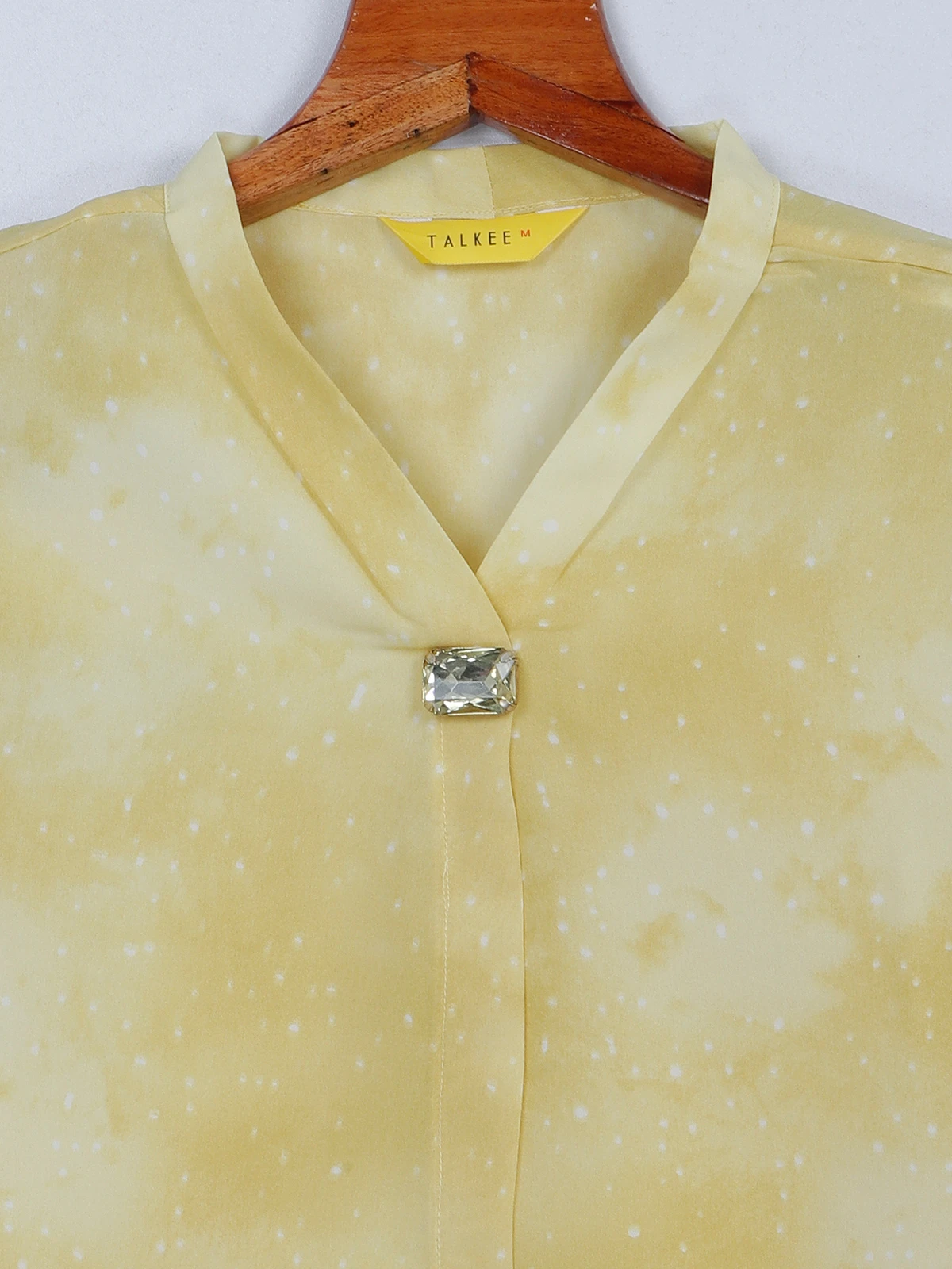 Enhance your casual look with this light yellow georgette printed top. It provides a chic cool and comfortable look with V neck and quarter sleeves.