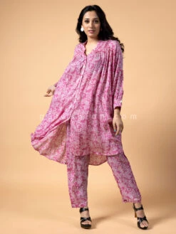 Look like a stunner in this pista green co ord set for a casual. Tailored from cotton fabric. Comes with a bottom and jacket.