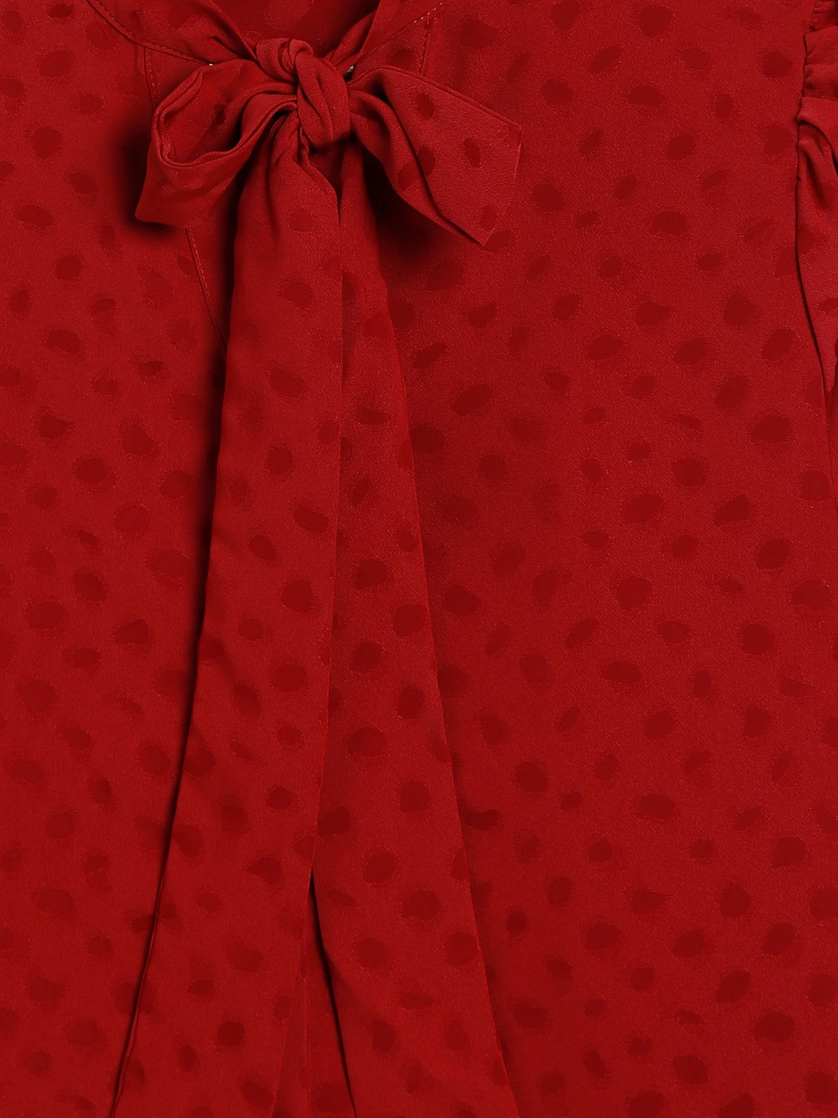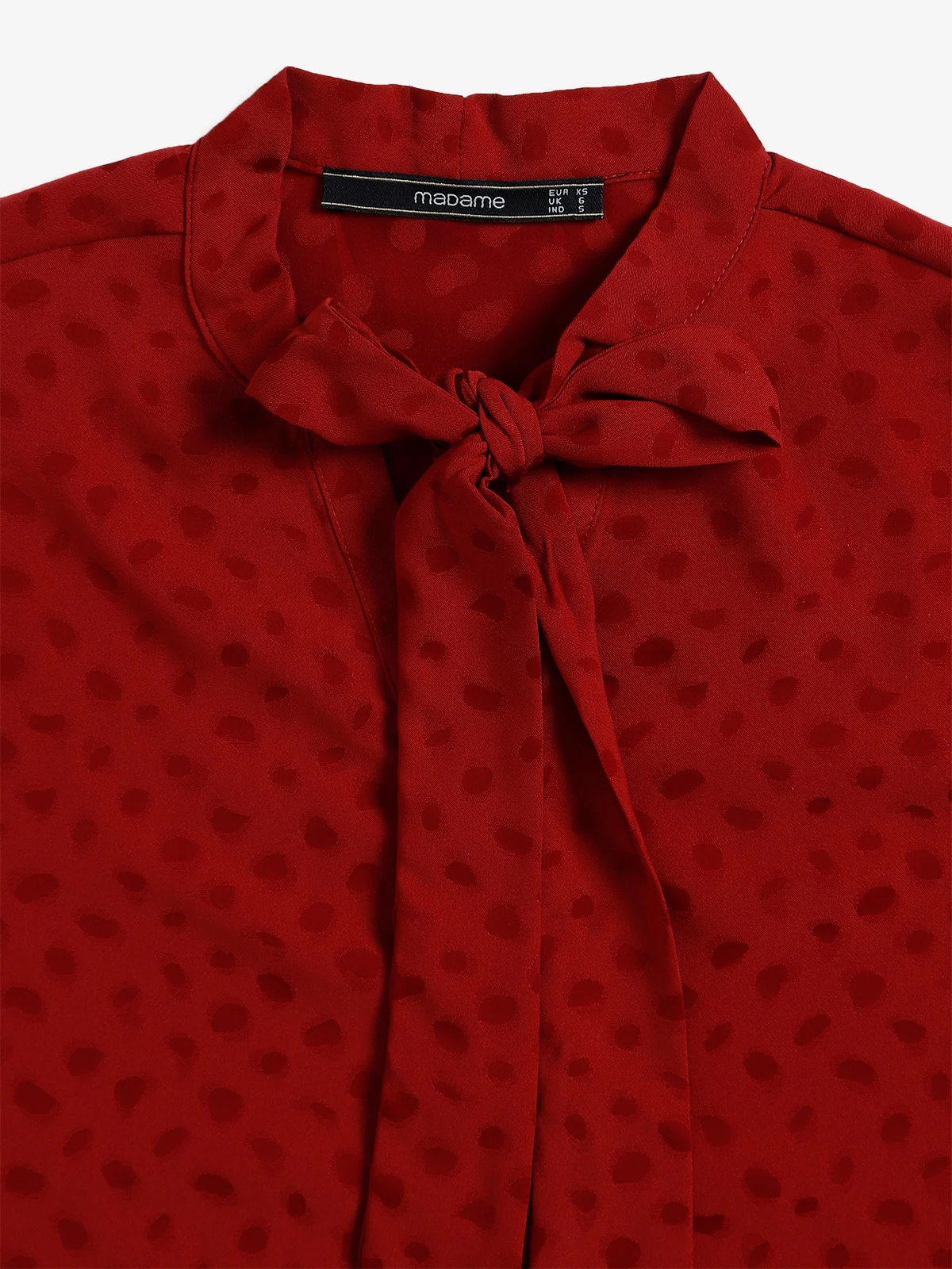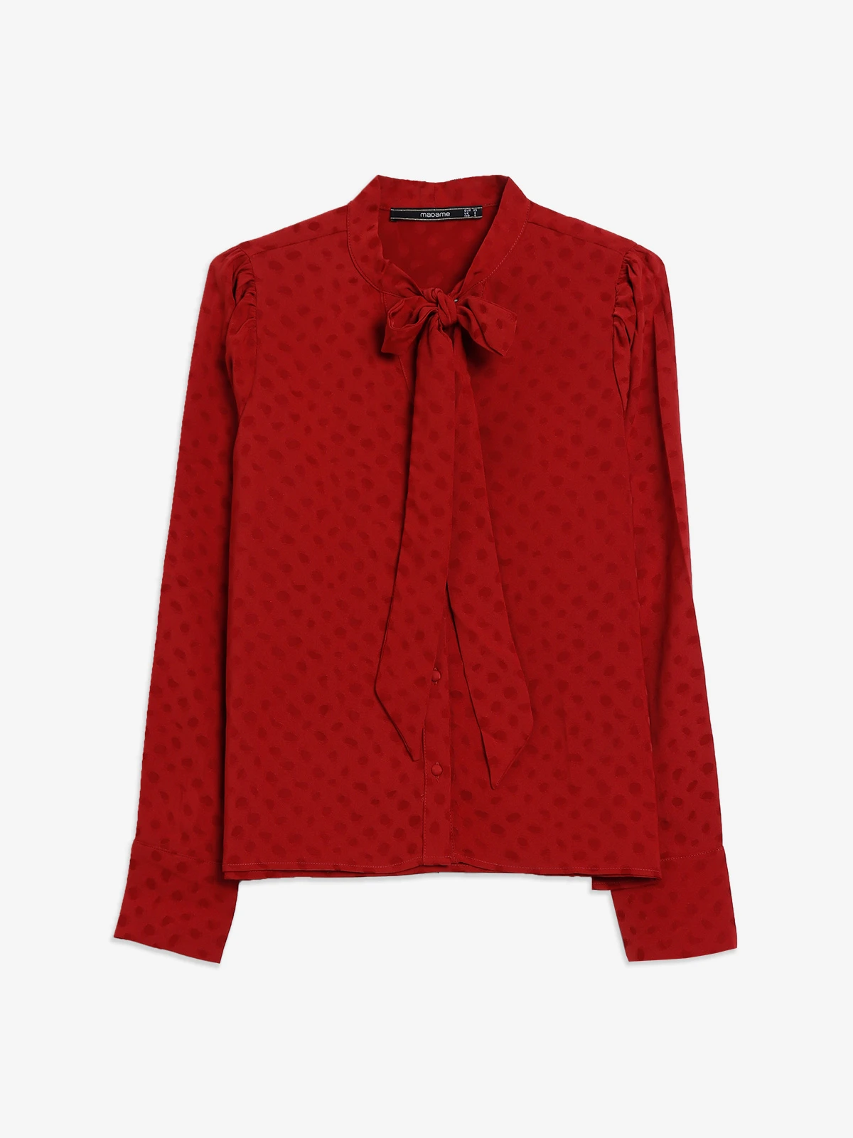 Fabricated in polyester, this red shirt ensures durable and soft wear. This printed shirt features a bandgala neck and full sleeves for a modern silhouette and appeal.