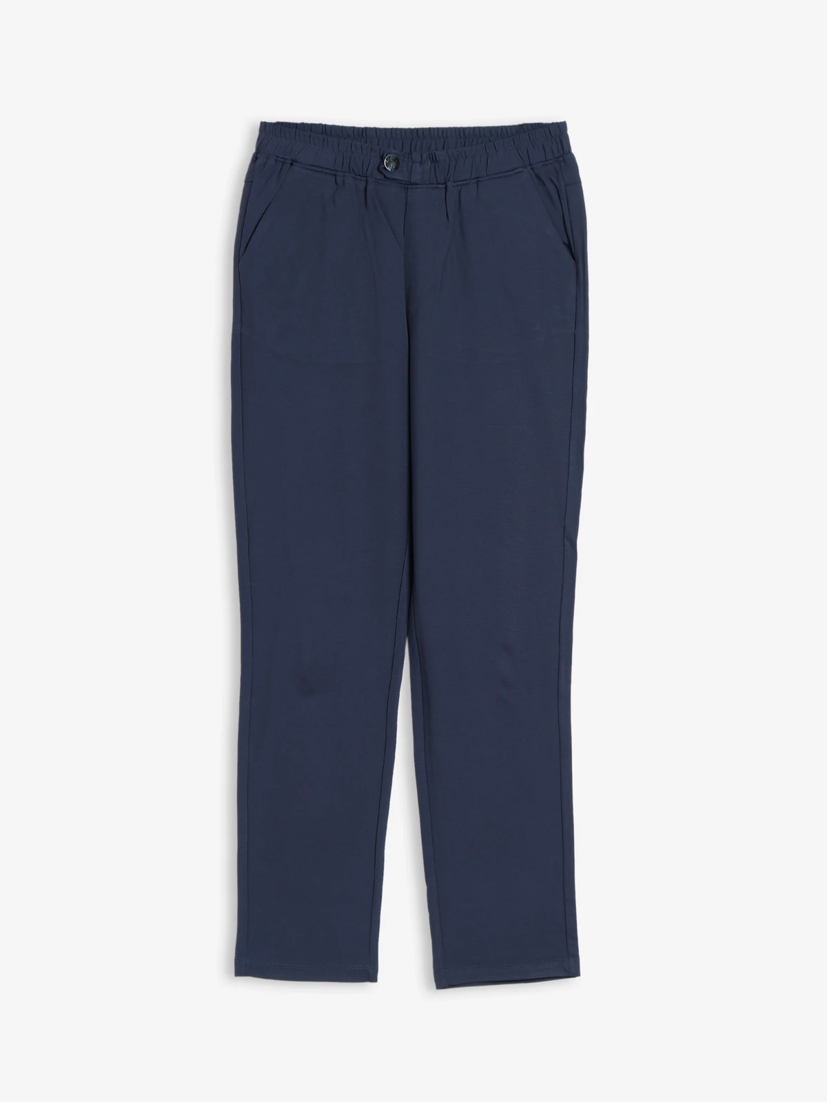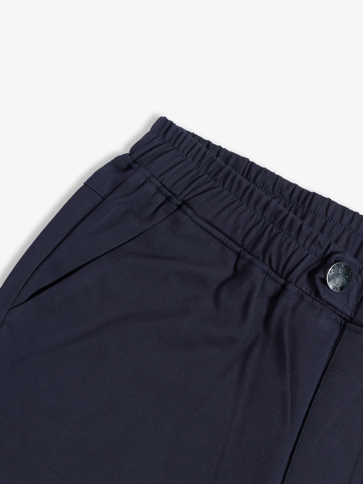 This navy plain pant with two slant pockets and an elasticated waistband for a classy look.